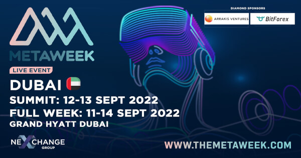 The MetaWeek conference will take place on September 11-14, 2022. Thousands of web 3.0 enthusiasts and thought leaders from all over the world will convene in Dubai to set the future trends of metaverse applications.